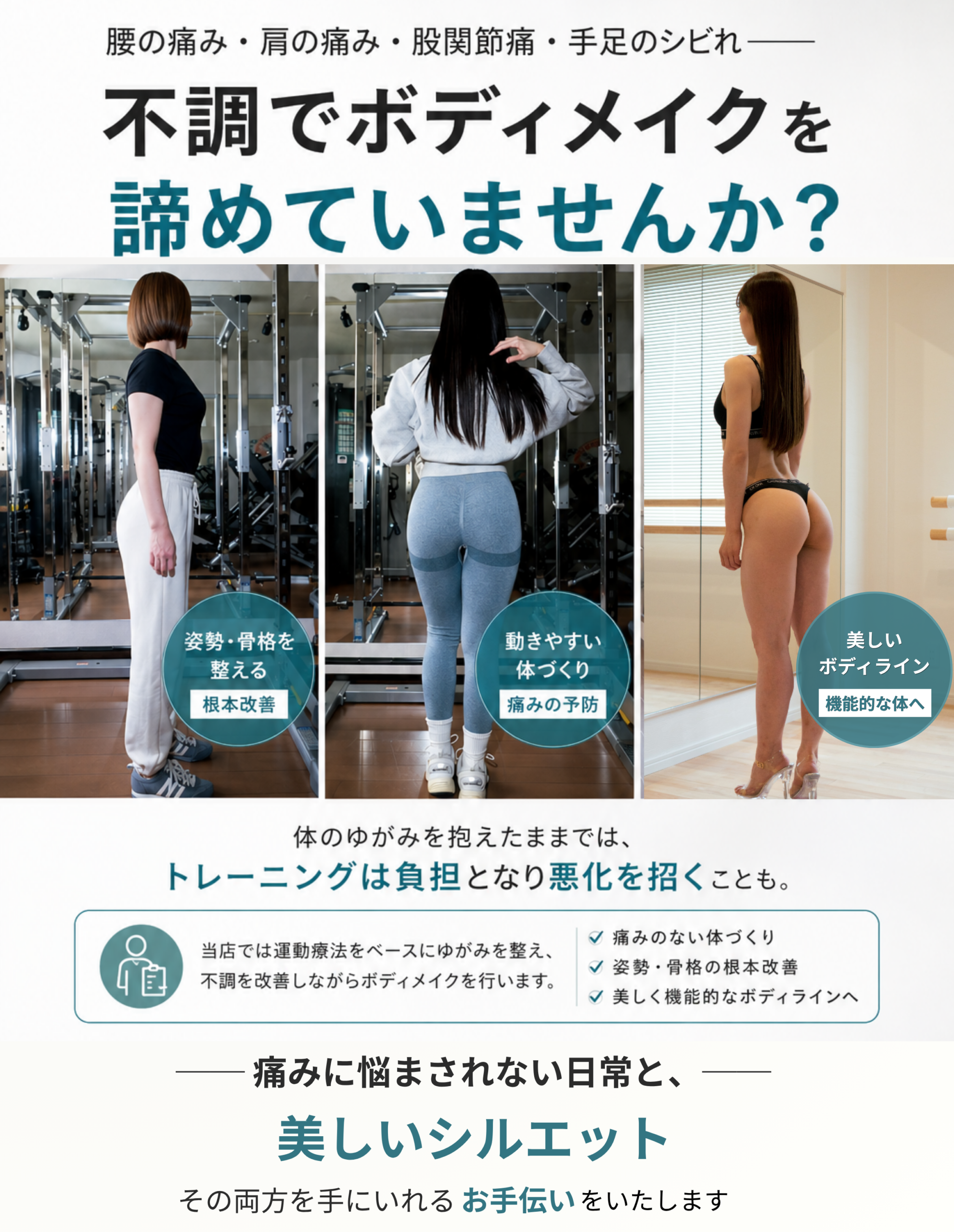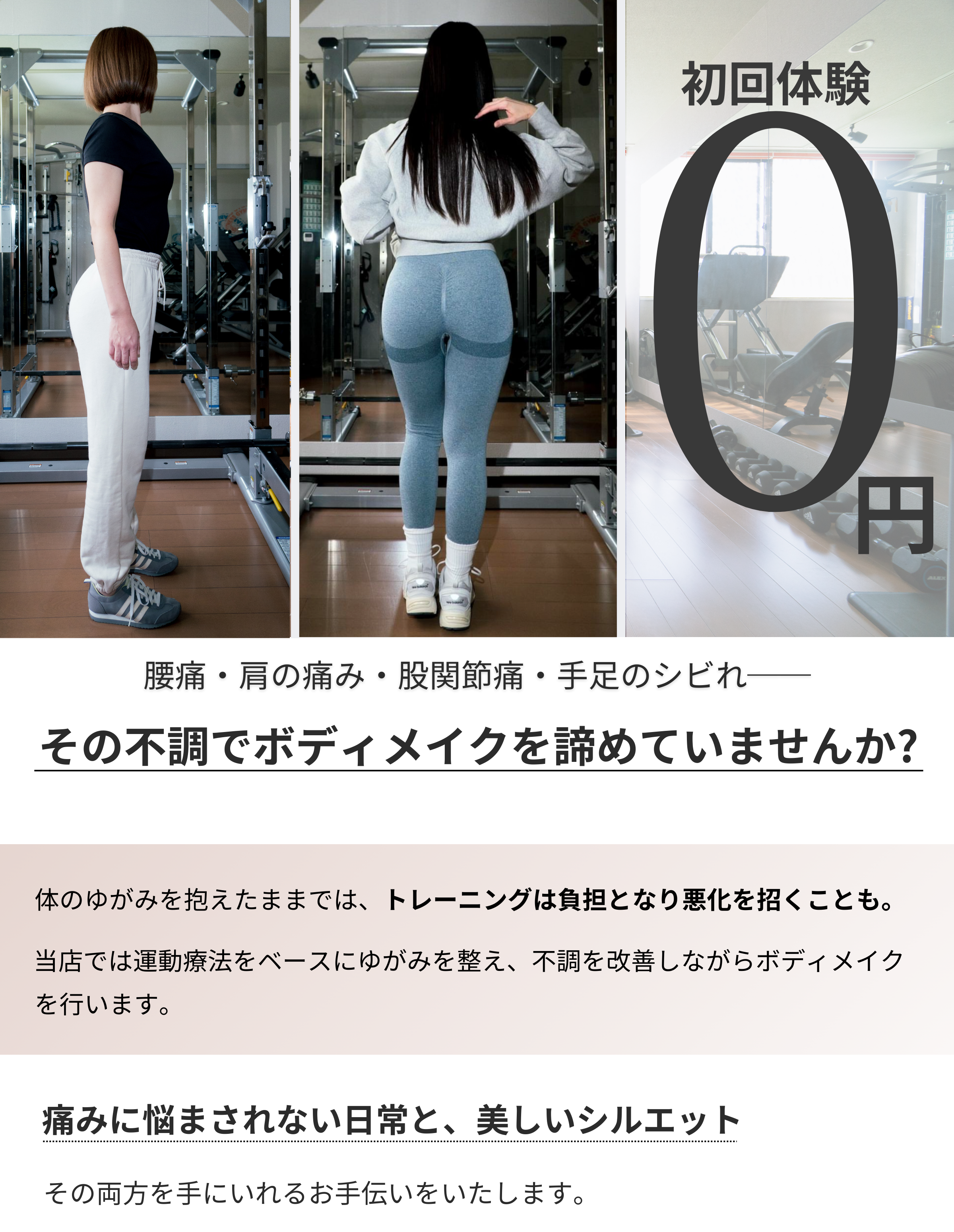最初は、ただ筋トレすればいいと思っていたのですが、実は股関節まわりのインナーマッスルが使えていなかったり、背中側の筋肉がガチガチに硬くなっていたことが原因だったと知ってびっくり。
