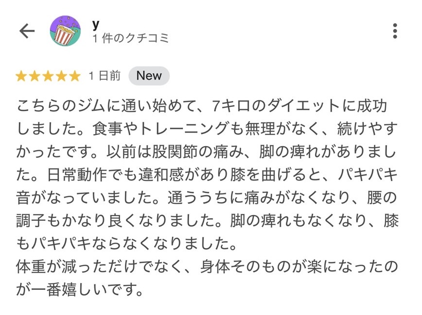 長年、腰痛と膝の痛みに悩まされてきましたが、こちらでトレーニングを始めてから、嘘のように症状が出なくなりました!